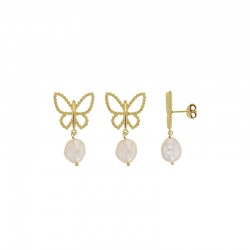 Boucles d'oreilles papillon ajourée argent 925/1000 doré ornées de perles synthétiques